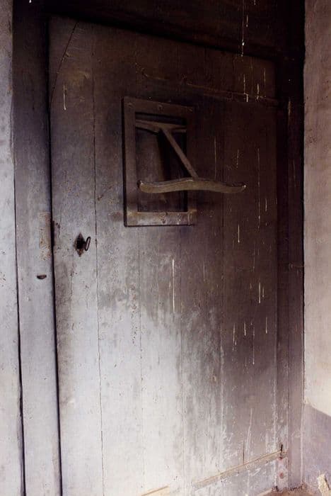 POP | Plateforme ouverte du patrimoinebâtiment conventuel, aile ouest, 1er étage, détail du vantail de la porte menant au grenier où est aménagé un porte-manteau