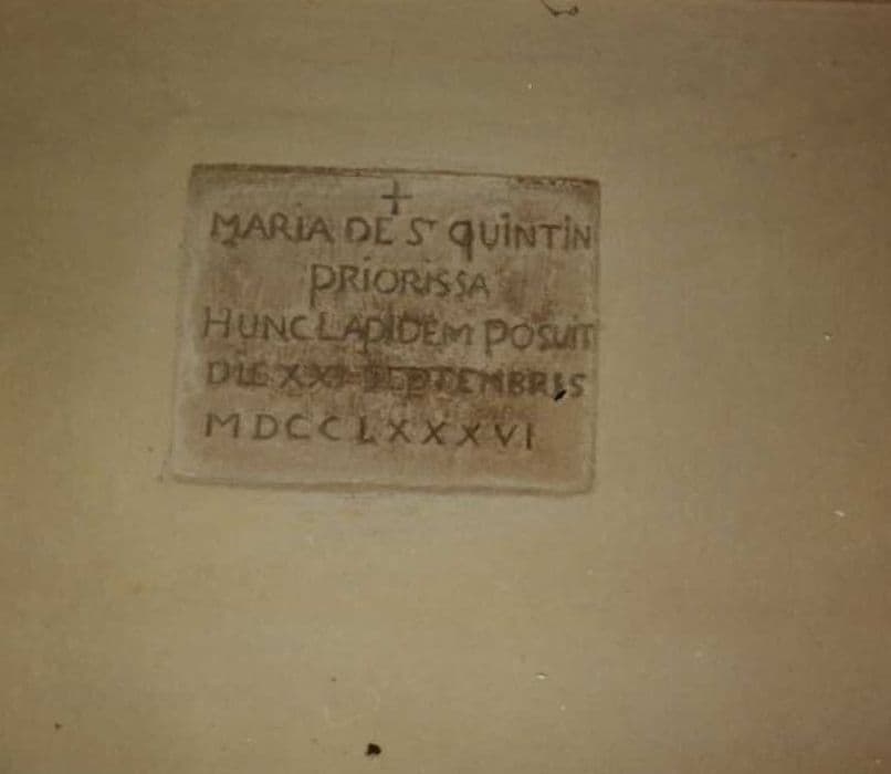 bâtiment conventuel, aile ouest, couloir de circulation du rez-de-chaussée, détail de la plaque de fondation