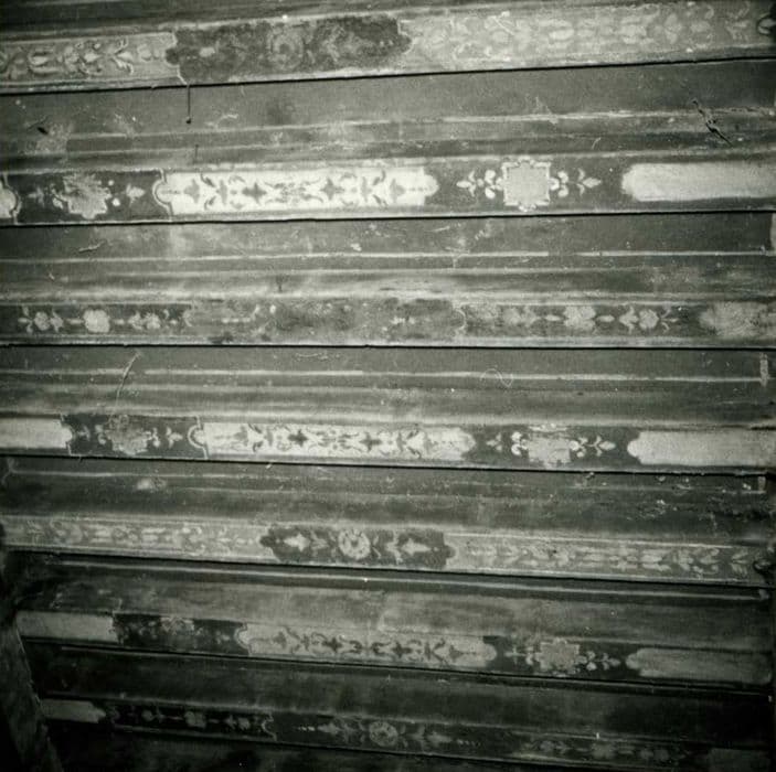vue partielle du plafond peint dans la tour communiquant avec la grande salle