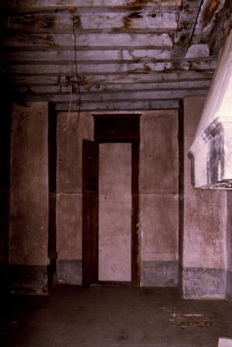 communs, « salle de garde » située au-dessus du porche d’entrée, trace interne de l’emplacement de l’ancien pont-levis