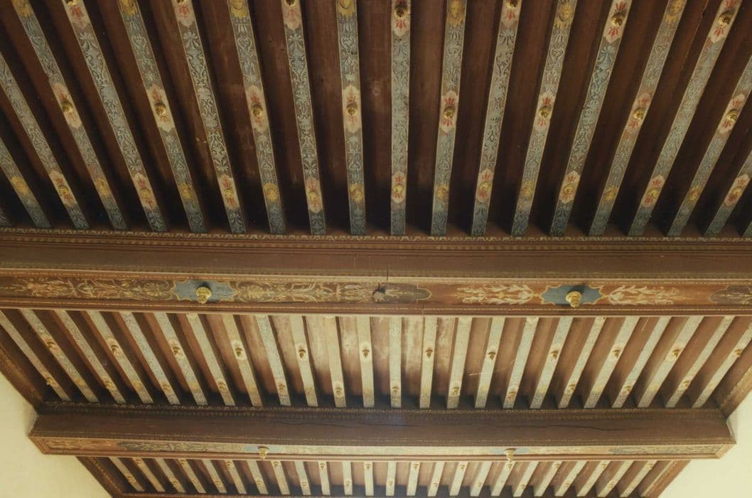corps central, 1er étage, vue partielle du plafond de la bibliothèque