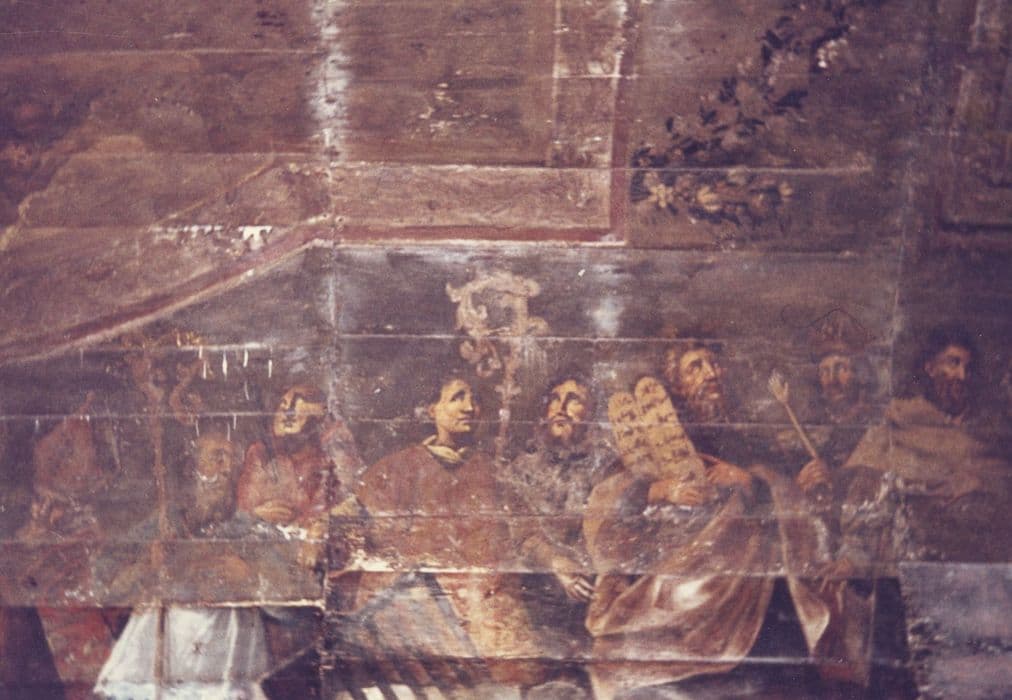 voûte lambrissée de la nef, peintures monumentales, détail