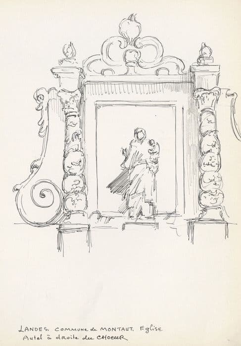 POP | Plateforme ouverte du patrimoineautel latéral sud, retable, statue : Vierge à l'Enfant (dessin : encre sur papier)