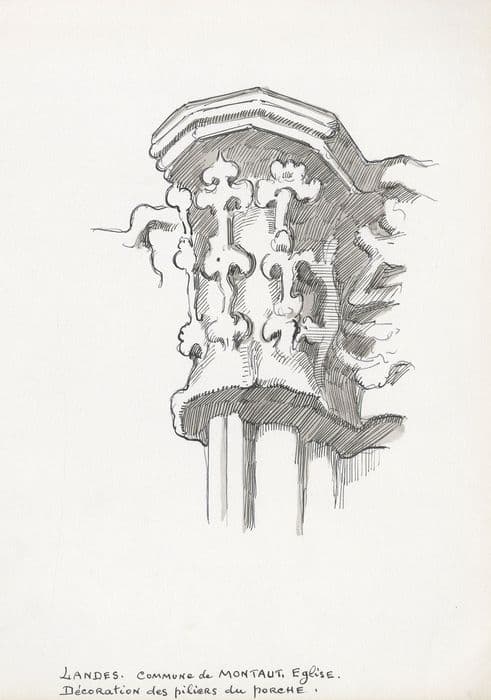 porche sud, détail (dessin : encre sur papier)