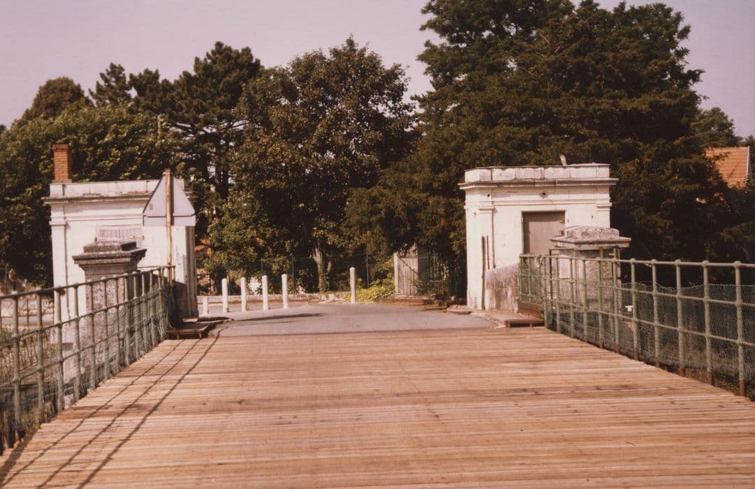 Pont suspendu et anciens pavillons à péage