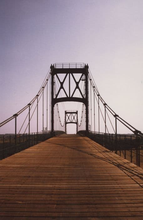 Pont suspendu et anciens pavillons à péage