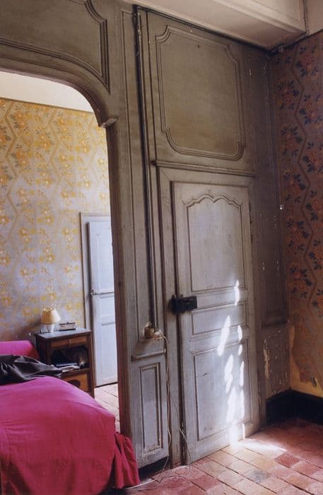 rez-de-chaussée, chambre grise, vue partielle des lambris de revêtement