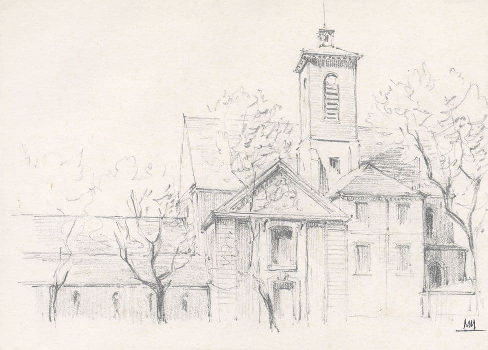 façade latérale sud (dessin : crayon sur papier)