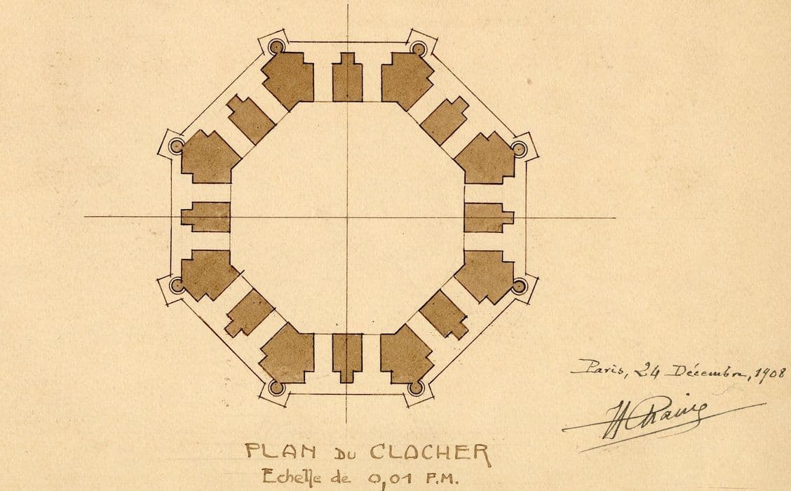 POP | Plateforme ouverte du patrimoineplan du clocher (dessin : encre sur papier)