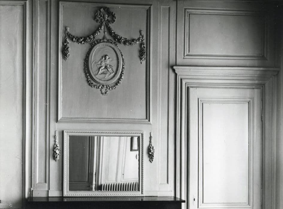 grande chambre, 1er étage, lambris de revêtement, détail du trumeau de cheminée