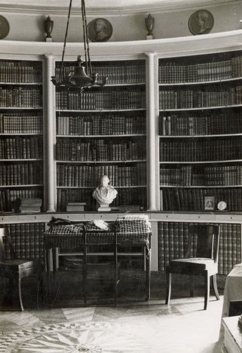 bibliothèque, vue partielle des lambris de revêtement