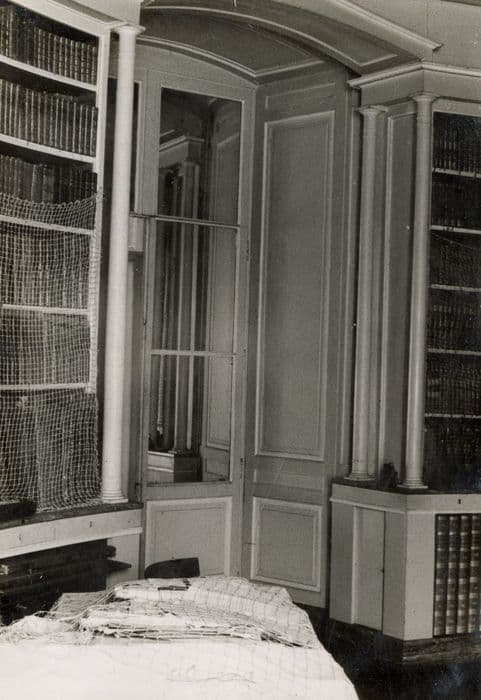 bibliothèque, vue partielle des lambris de revêtement