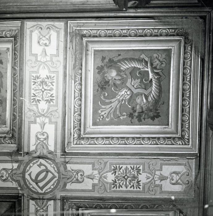 rez-de-chaussée, pièce non localisée, plafond peint, détail