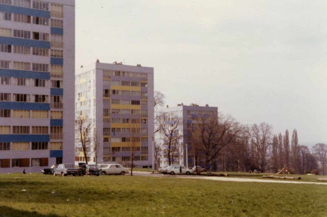 immeubles situés à proximité du château en direction du Nord-Ouest depuis la terrasse nord dans l’ancien parc