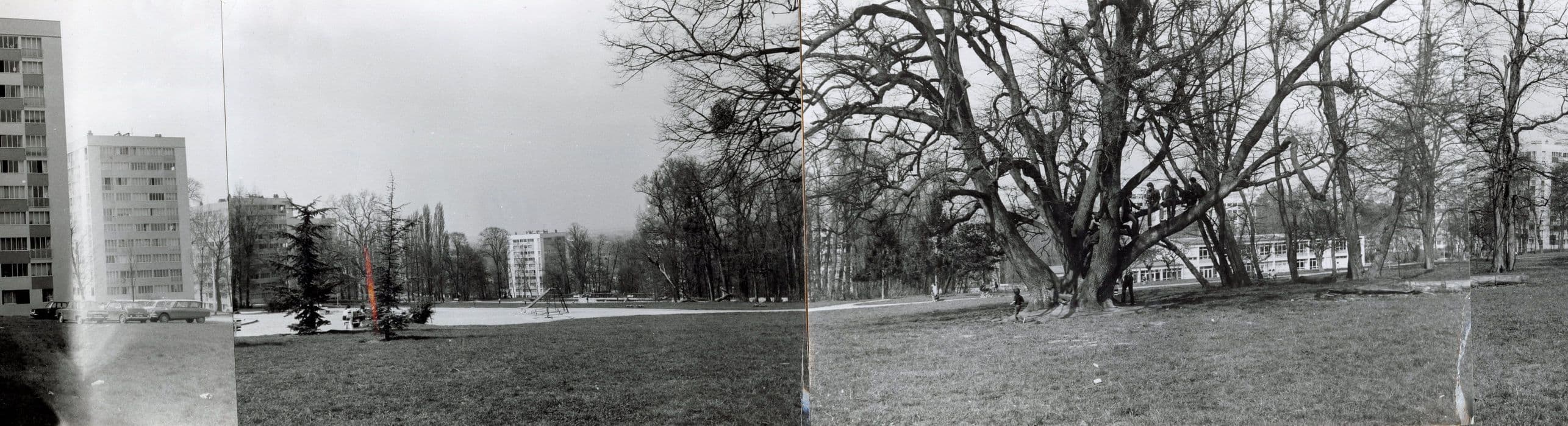 immeubles situés à proximité du château en direction du Nord-Ouest depuis la terrasse nord dans l’ancien parc