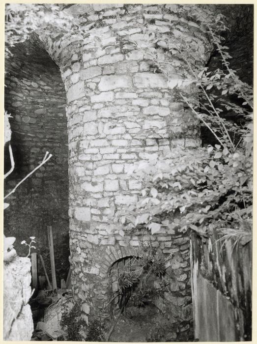 vue partielle des vestiges du donjon, pilier et voûte abritant le puits central