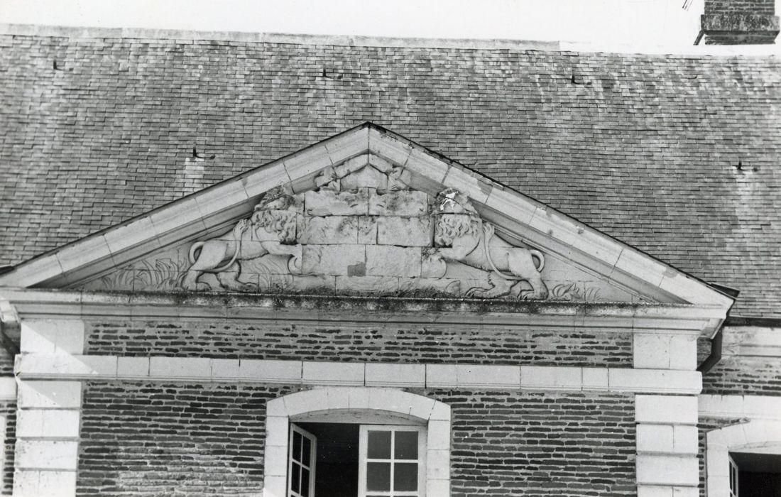 façade sud-est, avant-corps central, détail du fronton