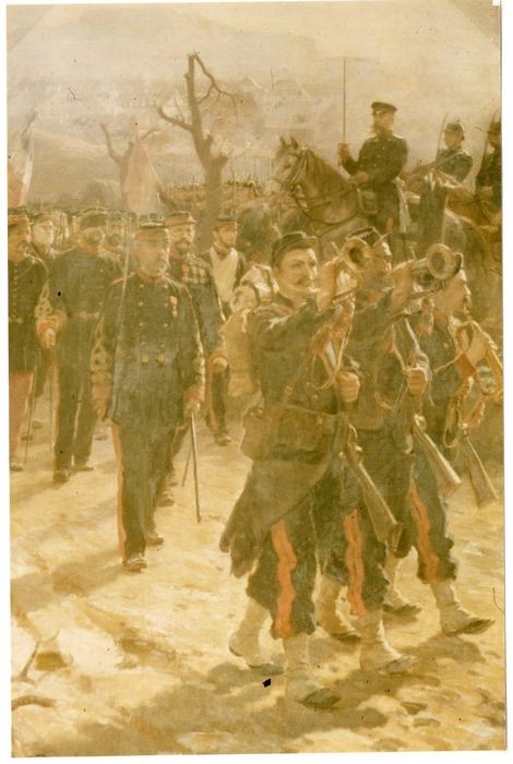 salle des Illustres, détail du décor (Artilleurs quittant Belfort)