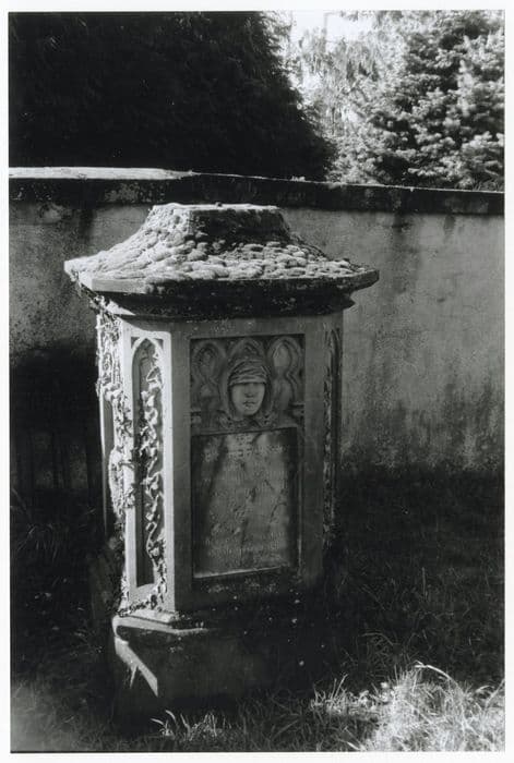 tombe portant le visage d’une femme aux yeux bandés