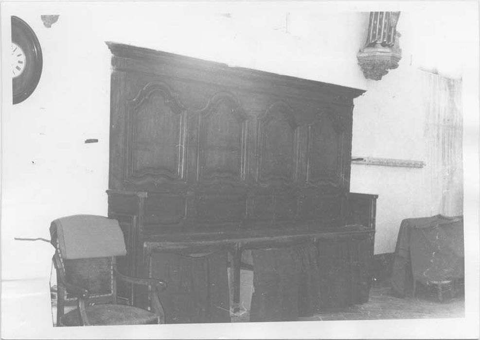 Photographie fournie par le conservateur des antiquités et des objets d'art. Photographie conservée dans les armoires du service de la documentation des objets mobiliers.