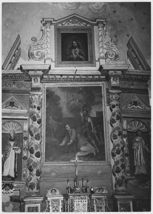 POP | Plateforme ouverte du patrimoineretable du maître-autel et son tableau : lapidation de saint Étienne, deux statues : saint Clair et saint Étienne