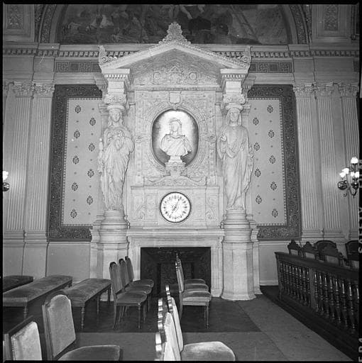 POP | Plateforme ouverte du patrimoineSalle des mariages : cheminée monumentale surmontée d'une cariatide et d'un atlante en pied
