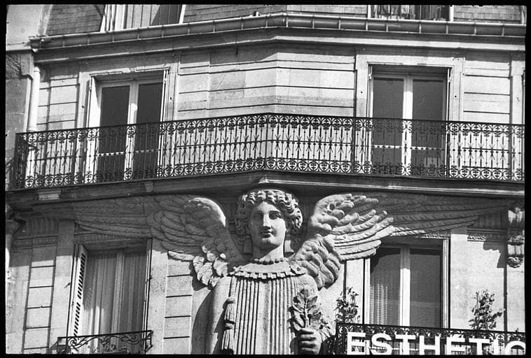 POP | Plateforme ouverte du patrimoineFaçade ornée d'une cariatide ailée en pied : buste de la cariatide
