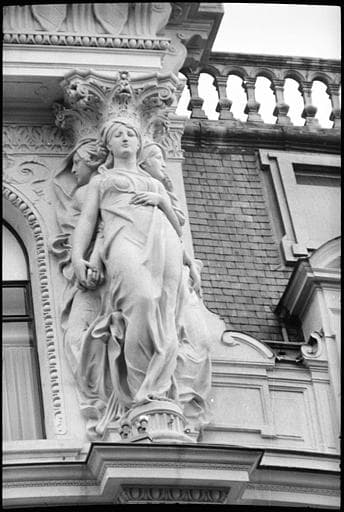 POP | Plateforme ouverte du patrimoineTriples cariatides en pied supportant un fronton : vue rapprochée d'une cariatide