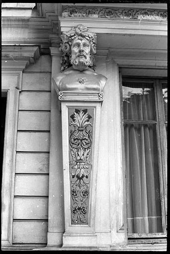 POP | Plateforme ouverte du patrimoineFaçade ornée d'un atlante et d'une cariatide en buste : vue rapprochée de l'atlante