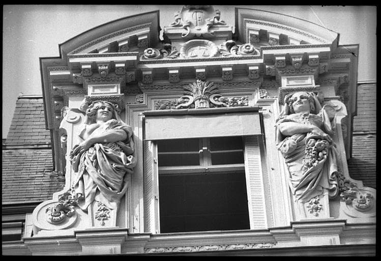 POP | Plateforme ouverte du patrimoineChien-assis flanqué de deux cariatides en gaine avec bras : vue rapprochée