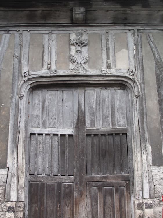 Portail d'accès au clocher ; pan de bois
