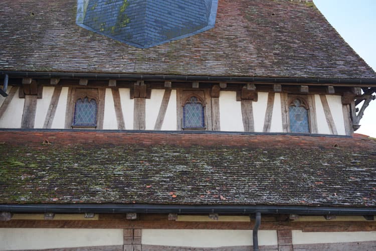Façade nord-ouest : pans de bois et baie