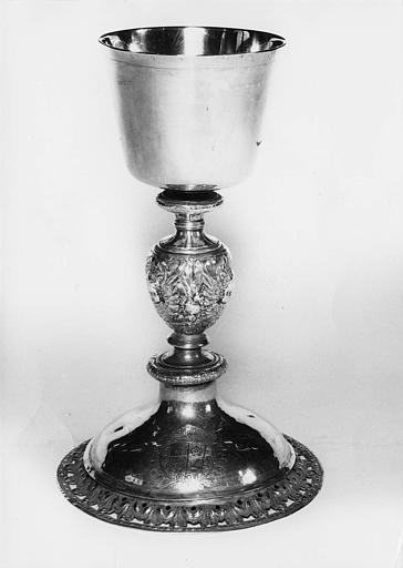POP | Plateforme ouverte du patrimoineCalice en argent et argent doré, au noeud orné de chérubins, au pied à frise de feuilles gravé d'armoiries