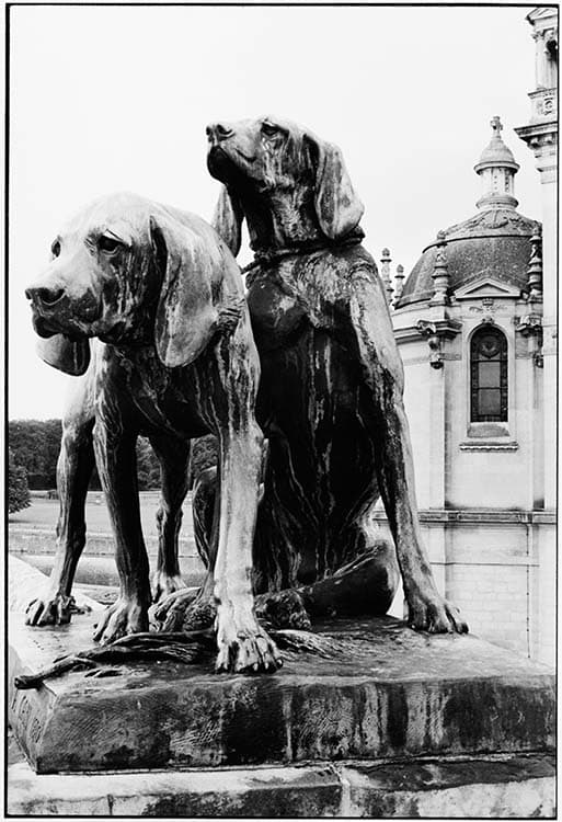 La terrasse du château de Chantilly (Oise), 1993 ; [Chiens de meute Fanfareau et Brillador]