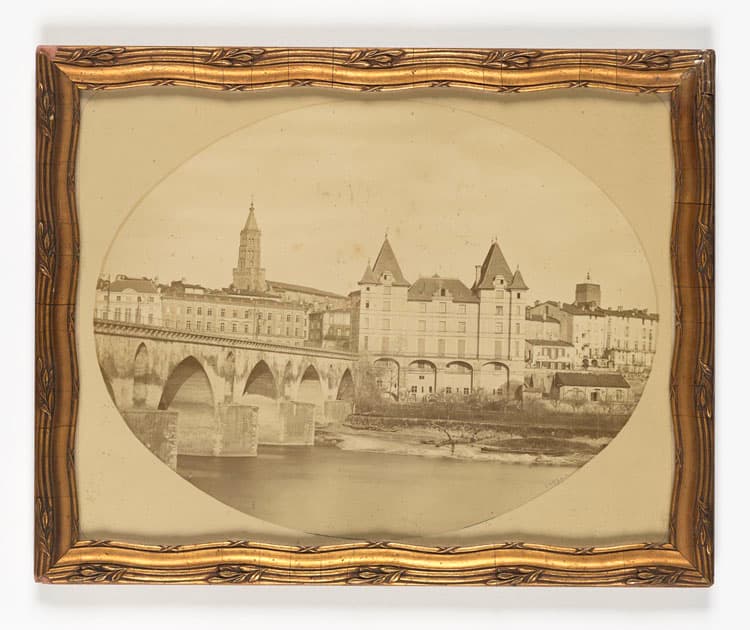 Tirage photographique de forme ovale présenté dans un cadre rectangulaire. Une étiquette collée au dos du cadre donne des informations sur le photographe : « Montauban avant 1874. photographie signée Jean Cassan (1832-1891). A pris plusieurs brevets sur la photographie. Atelier de photographie à Montauban jusqu’en 1874 »