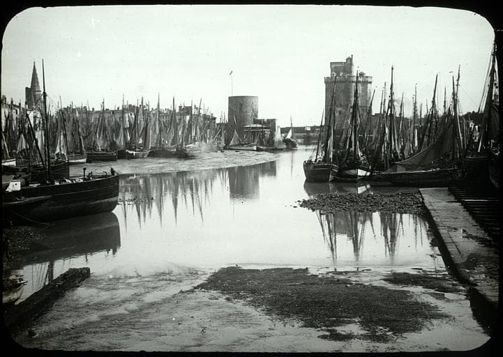 POP | Plateforme ouverte du patrimoineVue d'ensemble du port à marée basse : voiliers, les trois tours à l'arrière-plan