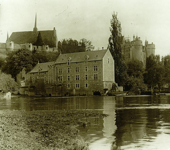 Vue d'ensemble du moulin, du château et de la collégiale Notre-Dame