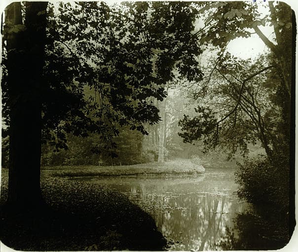 POP | Plateforme ouverte du patrimoineParc : lac avec bords arborés, contrejour
