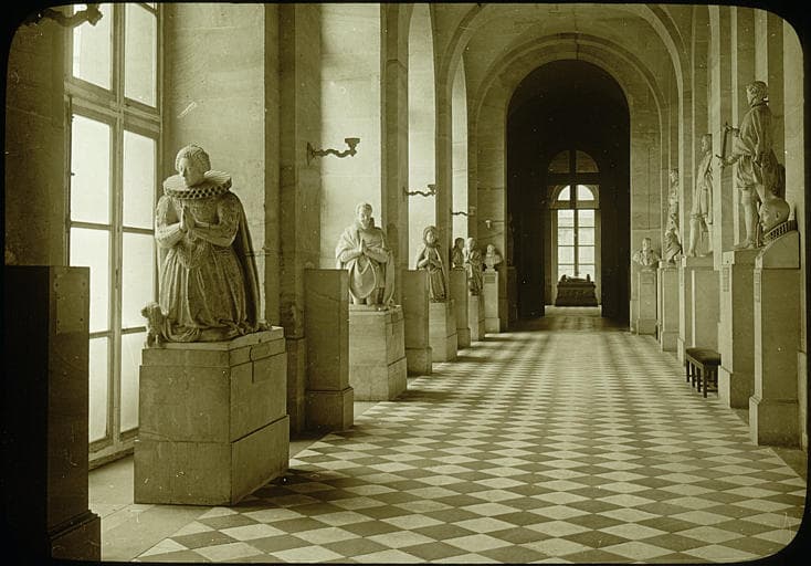 POP | Plateforme ouverte du patrimoineIntérieur, aile nord, rez-de-chaussée : galerie ornée de moulages de la basilique de Saint-Denis, vue perspective, orants de face