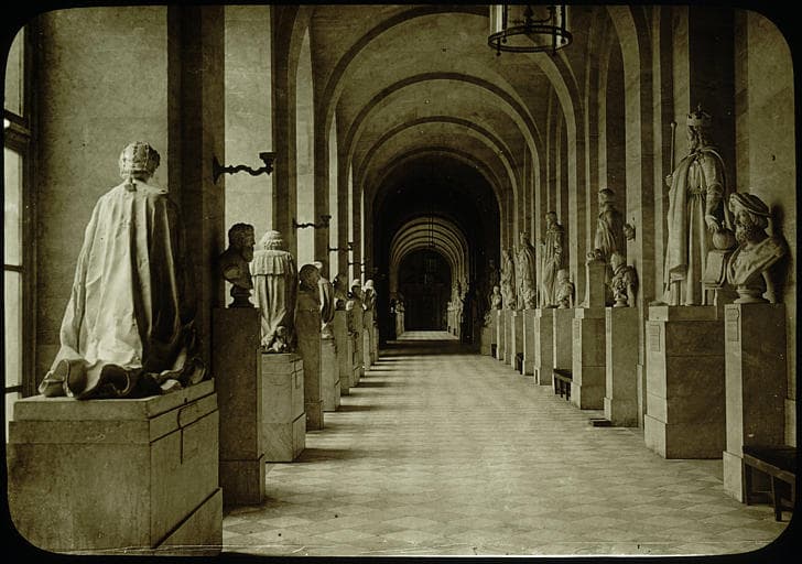 POP | Plateforme ouverte du patrimoineIntérieur, aile nord, rez-de-chaussée : galerie ornée de moulages de la basilique de Saint-Denis, vue perspective, orants de dos