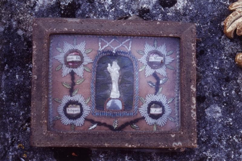 tableau-reliquaire : Vierge à l'enfant en pied, vue générale