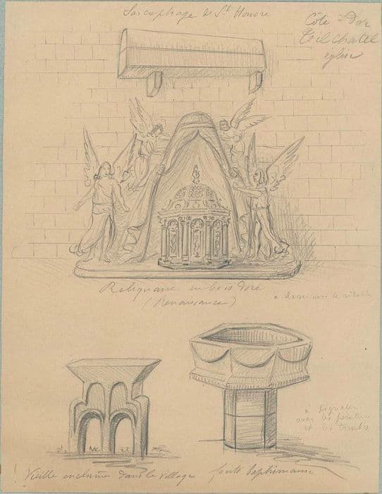 POP | Plateforme ouverte du patrimoinereliquaire dit de saint Honoré, fonts baptismaux, enclume, vue générale