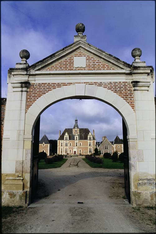 Portail d’entrée ; Façade est du château à l’arrière-plan