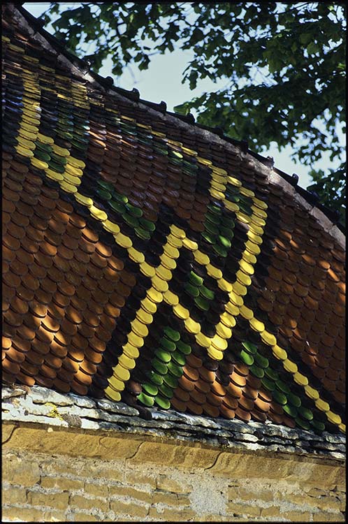 Pavillon d’entrée : toiture à décor géométrique de tuiles vernissées