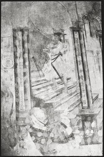 POP | Plateforme ouverte du patrimoineSecond corps de logis, partie sud, 1er étage, galerie ; peinture monumentale : fragment, personnage montant un escalier (détail)
