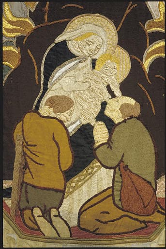 Bannière de procession : Vierge à l'Enfant, guérison d'un aveugle ; 1924 (détail)