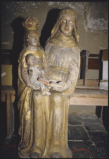 POP | Plateforme ouverte du patrimoineTransept nord ; groupe sculpté, : 'Sainte Anne, la Vierge et l'Enfant' ; avant restauration (face)