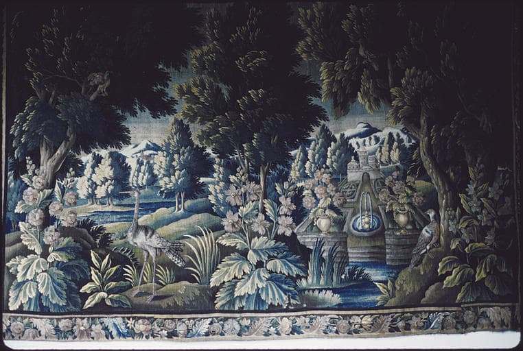 POP | Plateforme ouverte du patrimoinePièce murale (tapisserie sur métier) : Verdure, paysage, grue, château, fontaine à jet d'eau, rivière