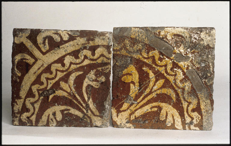POP | Plateforme ouverte du patrimoineCarrelage de sol : carreaux (2), médaillon à motif de fleurs de lys stylisées, terre cuite bicolore