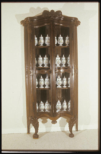 POP | Plateforme ouverte du patrimoineArmoire : vantaux (2) à vitres, pieds antérieurs galbés, ornés de motifs de coquilles et de feuillages, panneaux galbés, moulures, rosaces